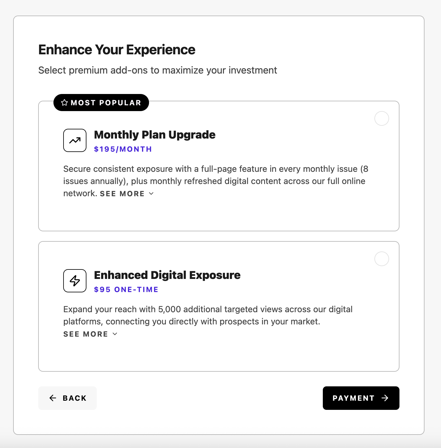Yes, your checkout can include optional upgrades, add-ons, or plan tiers — built right into the payment flow.